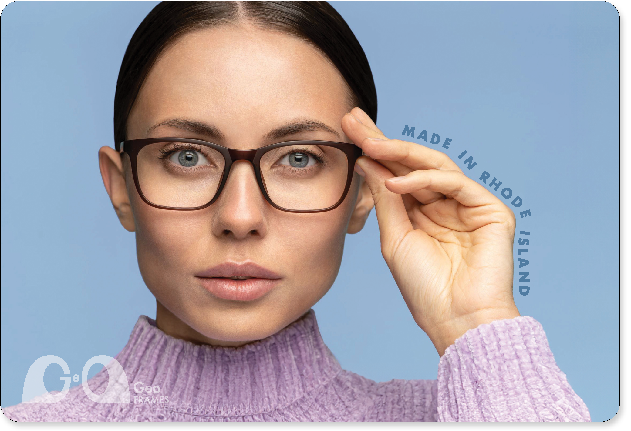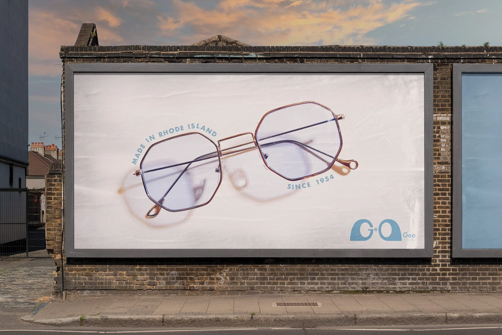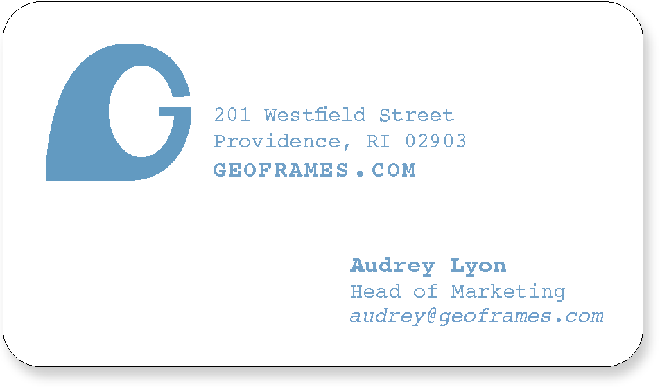Geo Frames is a fictitious sustainable eyewear designer and manufacturer based in Providence, Rhode Island. Inspired by futurist and innovator Buckminster Fuller, the brand is minimal and eco-conscious.