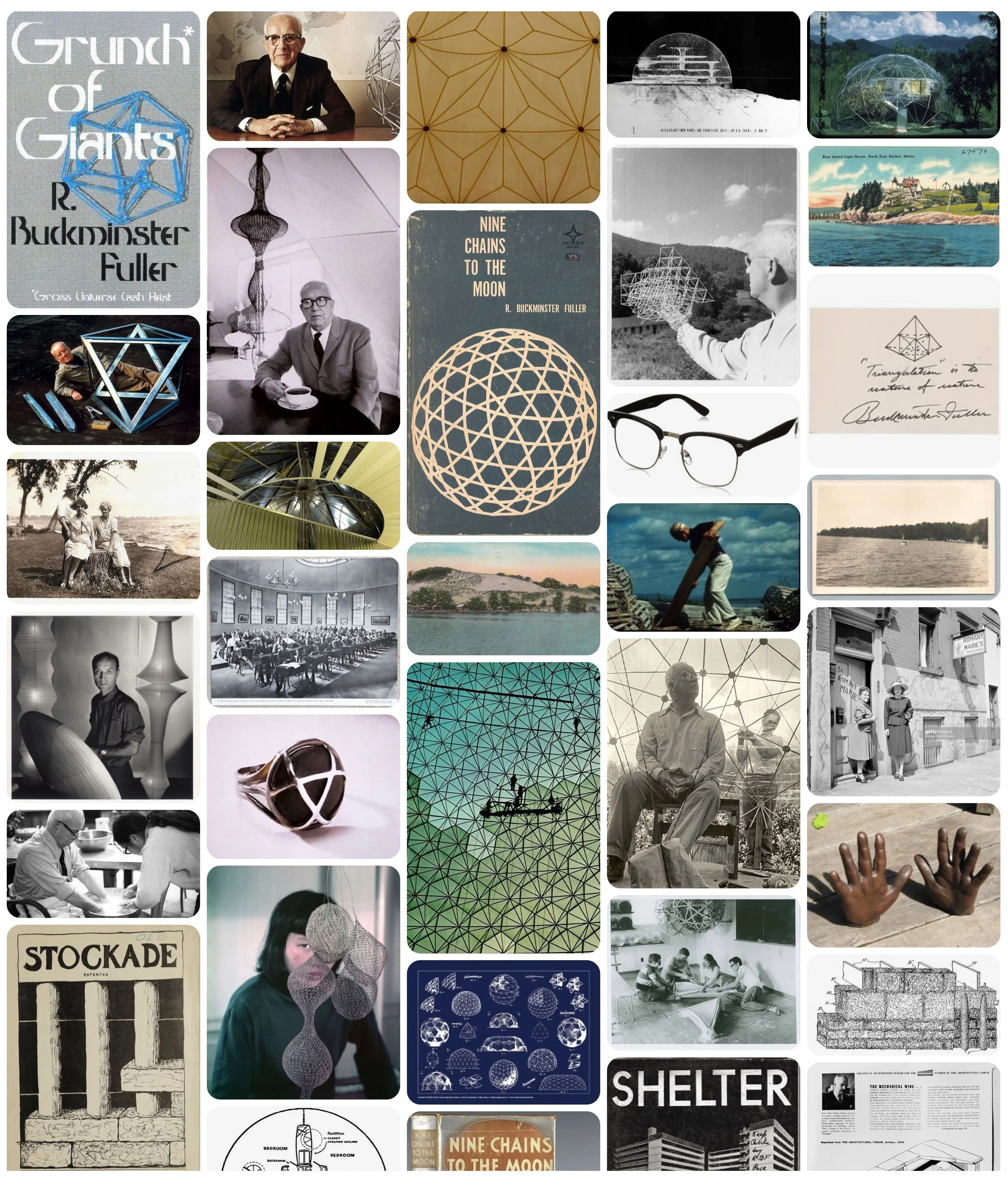 For this project, each student in my class was given a person to research and draw inspiration from. I was assigned futurist, inventor, architect and sustainability advocate Buckminster Fuller. The idea for eyewear came to me after looking through countless images of Fuller in horn-rimmed glasses. I am familiar with the popular eyewear material cellulose acetate from my work in jewelry and accessories and I thought an eyewear brand using this eco-conscious material would be a perfect fit for Buckminster Fuller. His love of minimal design and sustainability guided me to this concept.